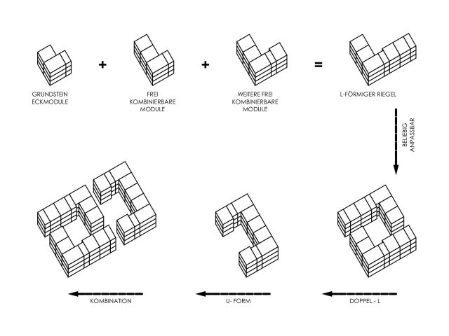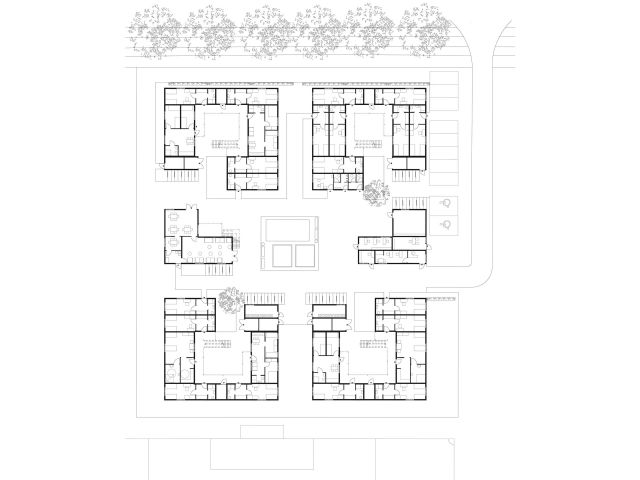 Using larger containers, each 3 meters wide, allows the design to accommodate more flexible floor plans. The modules are connected in clusters, some of which form small courtyards.