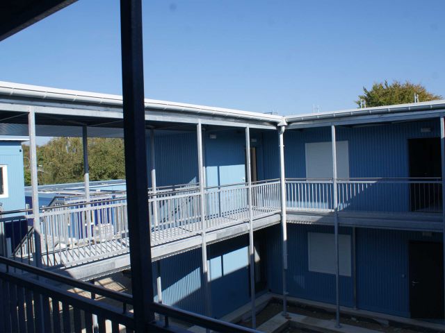 The temporary homes were constructed on municipal land and approved for five years. An employee from the Muslim community sensitised the planning architects to the residents. The outcome was living units of 24 m2 for two persons and 48 m2 for four persons, each with bath and kitchen. A maximum of 16 persons live on one level and are self-sufficient. The architects decided against communal showers, as they can lead to problems, especially with Muslim women. Some residents failed to turn off the taps because they found the noise of running water to be soothing, and for this reason water-stop valves had to be installed. The arrangement of the courtyard houses accommodates the need for peace and privacy, creating a layered system of private, semi-private and public areas. The complex has 24-hour security.