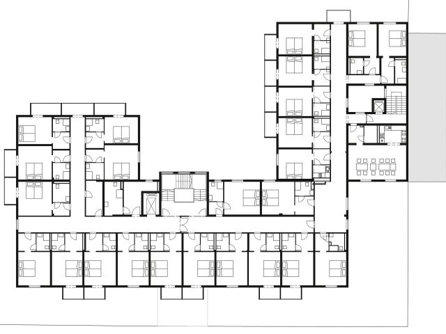 There are 78 rooms in the hotel, two thirds of which have a loggia. For the furniture and equipment the architects launched a crowdfunding campaign which raised € 57,000 for the purchase of beds, blankets, mattresses and dishes. Furniture was selected from the Caritas warehouses and renovated; armchairs and cupboards from the old people’s home were refurbished by designer Daniel Büchel. For reasons of expense the existing plastic windows and the baths had to be retained; only broken tiles were replaced. This hotel distinguishes itself from other shabby-chic hotels by the “social dimension of vintage”, as the architects call it. There can be no doubt that the recruitment of an internationally renowned architectural office by a non-profit organisation such as Caritas was instrumental in helping a locally celebrated hotel to become a “social business” in only a matter of months.