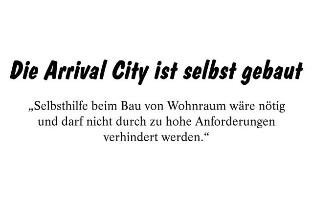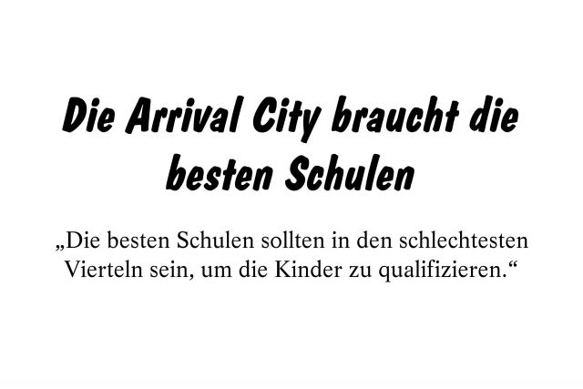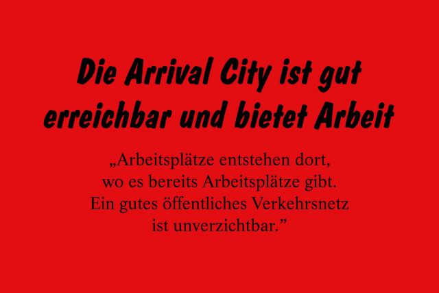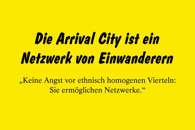 In enger Zusammenarbeit mit Doug Saunders, dem Autor von Arrival City: Die neue Völkerwanderung, wurden acht Thesen zur Arrival City erarbeitet. Welche architektonischen und städtebaulichen Bedingungen müssen in den Arrival Cities gegeben sein, damit sich Einwanderer in Deutschland erfolgreich integrieren können?