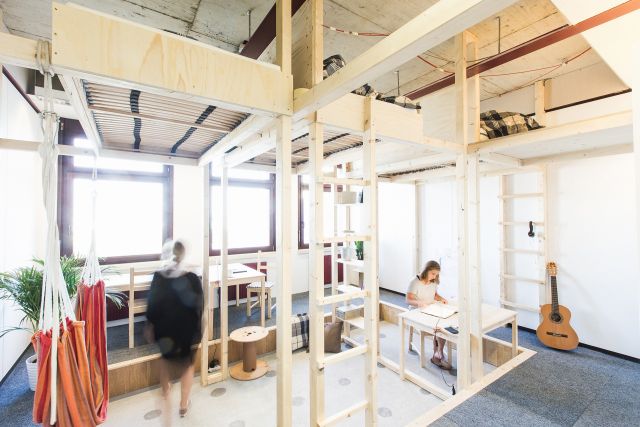 Das HAWI-Projekt in Wien ist ein kollaboratives Wohnprojekt für Studierende und Geflüchtete der hochschulübergreifenden Initiative HOME NOT SHELTER! Während sich die Studenten der TU Wien dem Umbau der Büroräume zu bewohnbaren Zimmern widmeten, engagierte sich die TU Berlin mit der Gestaltung und Umsetzung der Gemeinschaftsräume. Die Aufgabe bestand darin, das Innere des monotonen 80er Jahre Bürobau, dem ehemaligen Siemens Hauptquartier Österreich, mit innovativen Nutzungskonzepten und gestalterischen Mitteln bewohnbar und vor allem wohnlich zu machen. Der Name der Initiative ‘Home Not Shelter!’ war nicht nur These, sondern Aufgabenstellung zugleich, die zentrale Frage dabei: mit welchen Mitteln und Arbeitsweisen kann man das Bestandsgebäude so aufwerten, dass nicht nur reine Unterkünfte für Geflüchtete und Studenten entstehen, sondern ein Zuhause entsteht als Ort des Ankommens und des Wohlfühlens?