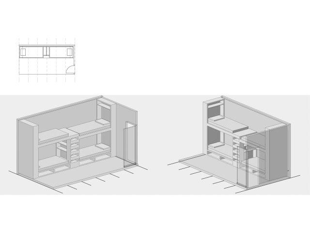 Die vorgefertigten Innenraum-Module werden unterschiedlich zusammengesetzt und erfüllen somit das Raumprogramm und die Bedürfnisse der jeweiligen Bewohner.