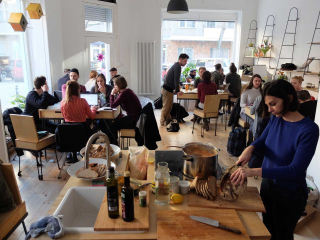 Im Berliner Stadtteil Schönberg hat die Organisation „Über den Tellerrand“ seit Sommer 2015 ihren neuen Sitz. Ziel der Organisation ist es, Integration auf Augenhöhe über gemeinsam organisierte Veranstaltungen mit Kulturbezug zu ermöglichen. Daher entstand die Idee, in einem ehemaligen Eck-Ladenlokal in der Roßbachstraße die Büroräume um einen großen Küchenraum („Kitchen-Hub“) zu ergänzen.