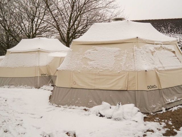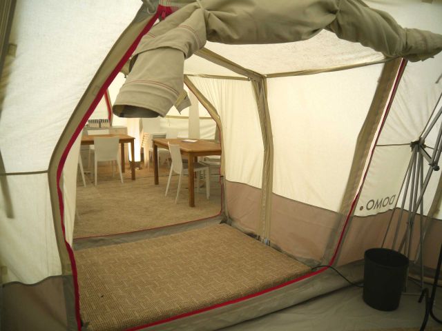 Das DOMO kann leicht erweitert werden, um wechselnden Bedürfnissen und Anforderungen zu begegnen. Beliebig viele einzelne DOMOs können über ihre Vorzelte per Reißverschluss miteinander verbunden werden. Es gibt unzählige Aufbau-Variationen, das System ist anpassbar an jede Personenzahl und jedes Raumangebot. DOMO ist kein weiteres Zelt. Es ist die erste mobile „Transitional Shelter“-Lösung zur nachhaltigen Verbesserung der Lebensbedingungen von Menschen, die aufgrund von Konflikten und Naturkatastrophen gezwungen wurden ihr Zuhause zu verlassen.