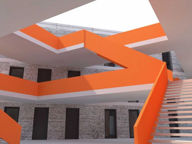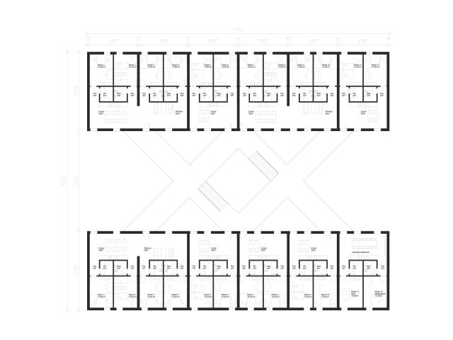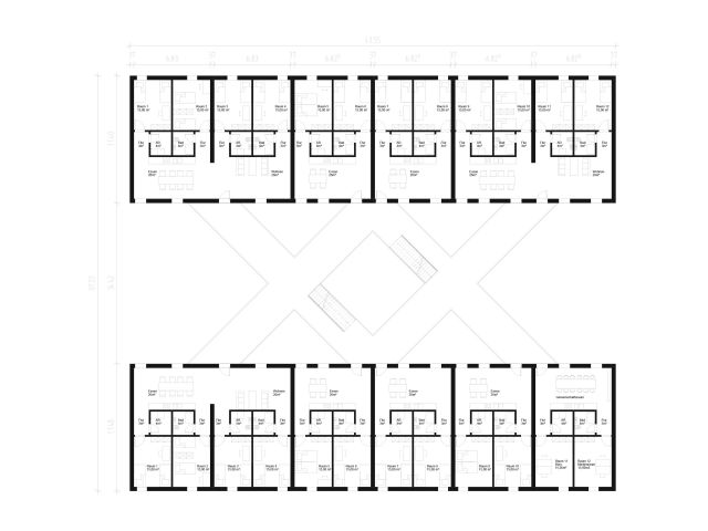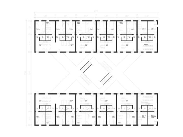 Zwei Gebäude in Fertigbeton. Die Unterkünfte sollen von Flüchtlingen, Studenten, Arbeitslosen, Monteuren und Pendlern gemischt belegt werden.