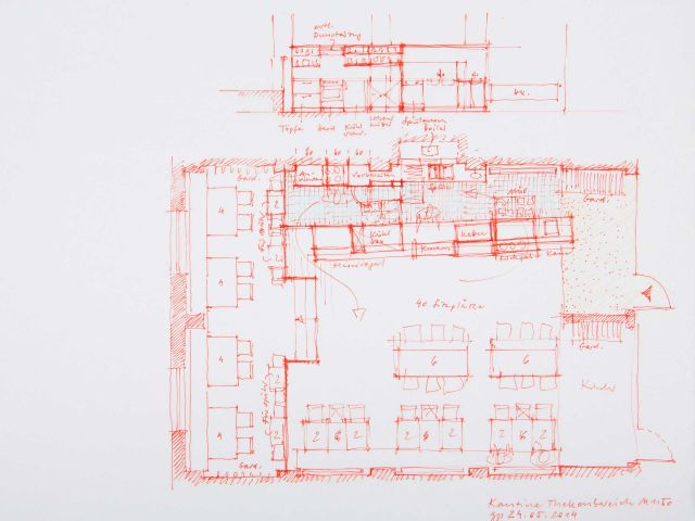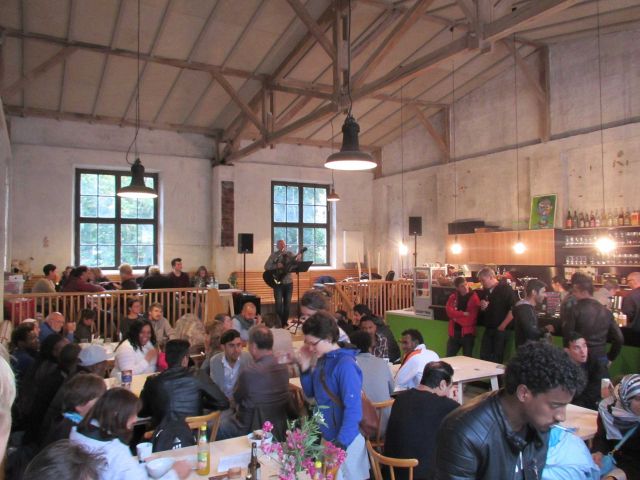 Umbau von einer Busgarage zum Café. Der Anlass zum Projekt war die Eröffnung einer Sammelunterkunft in unmittelbarer Nähe.
